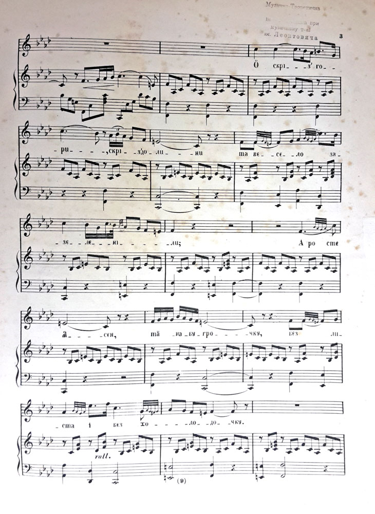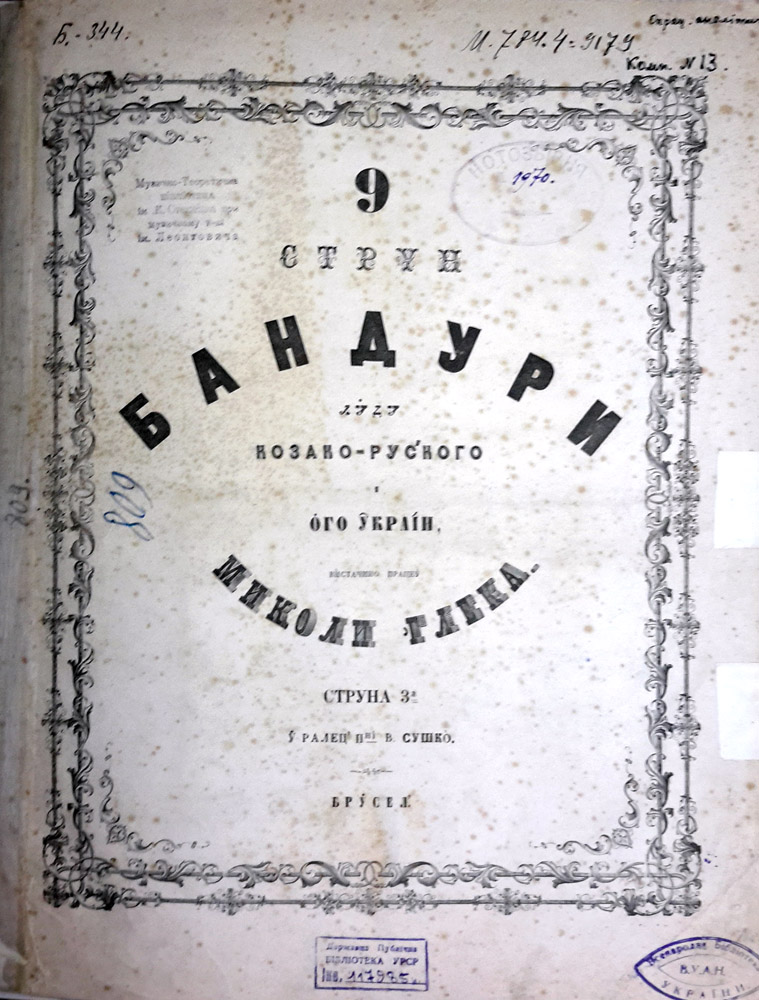 «Дев’ять струн української бандури» (1863), де подано українські пісні з нотами.