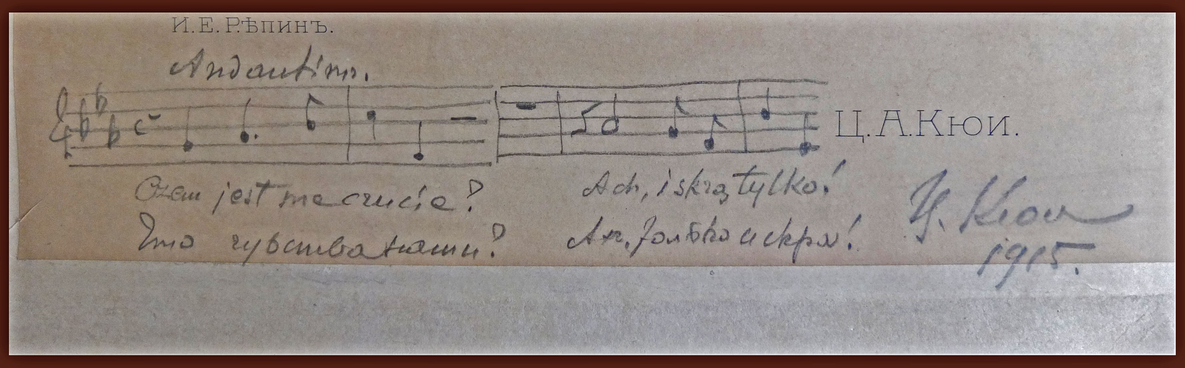 Окрім зазначених видань, експонуються деякі вокальні збірки Цезаря Антоновича, монографія «La musique en Russie» (Paris, 1880), а також автограф композитора, що знаходиться на репродукції його відомого портрету Іллі Рєпіна, де олівцем написано декілька рядків з романсу «Что чувства наши?..» на слова А. Міцкевича (ноти, текст польс. та рос. мовою, підпис).