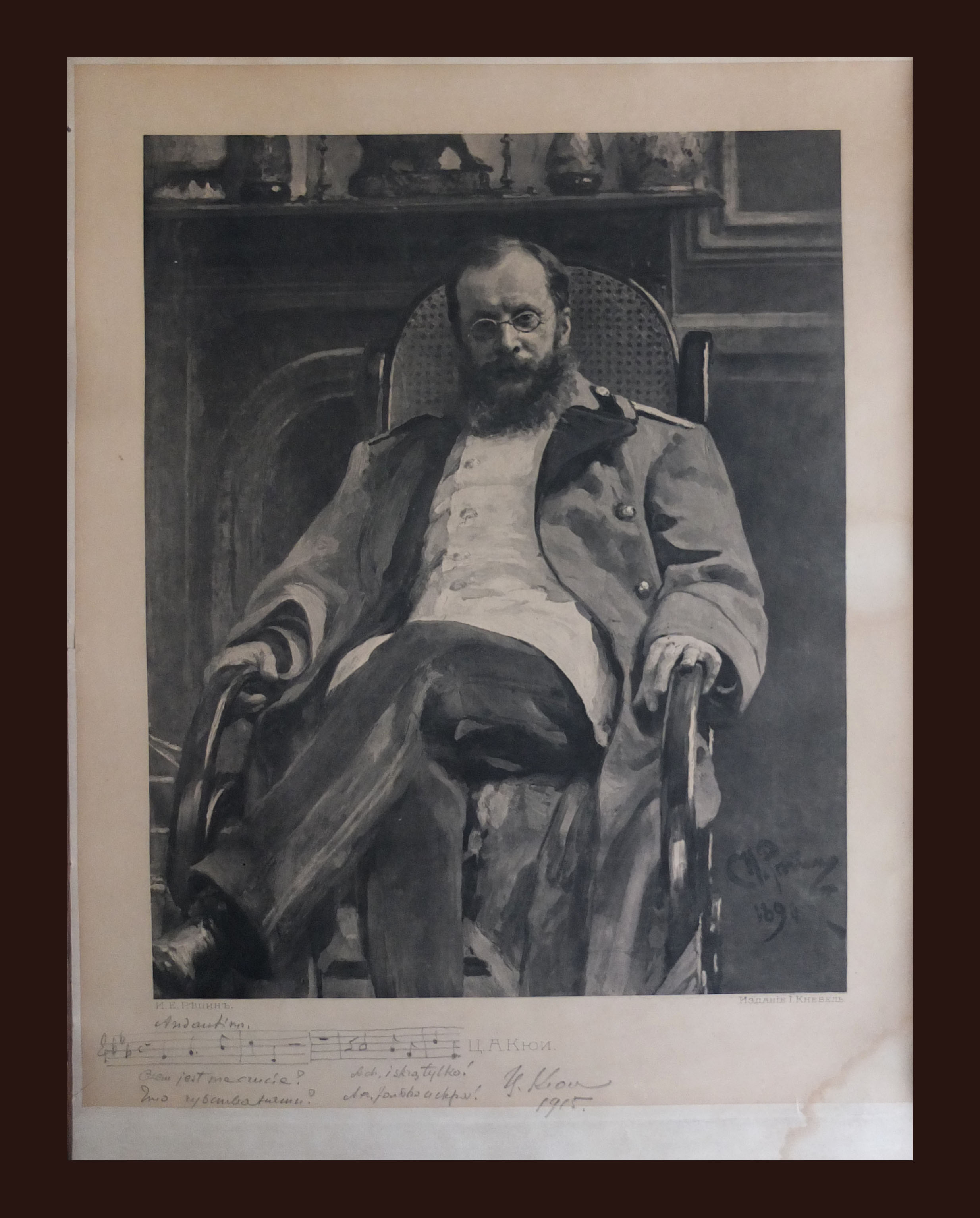 У фондах нашого відділу зберігаються 12 оперних клавірів Кюї (окрім «Сина мандарина», «Le Flibustier» та «Червоної шапочки»), на виставці представлені наступні прижиттєві видання композитора: