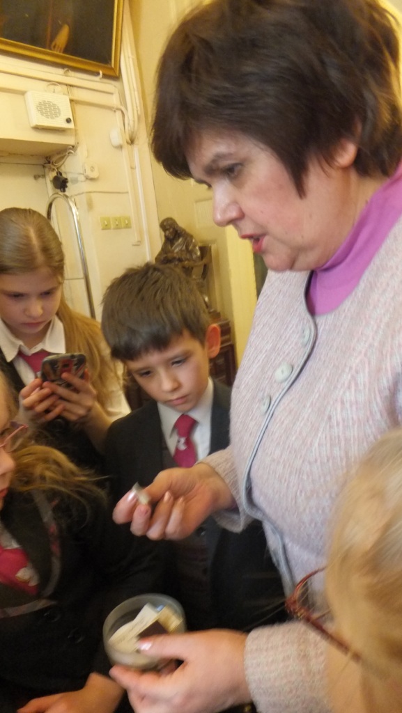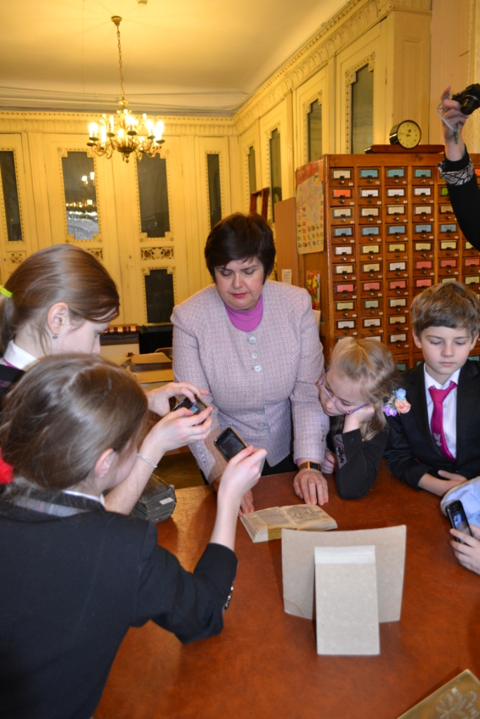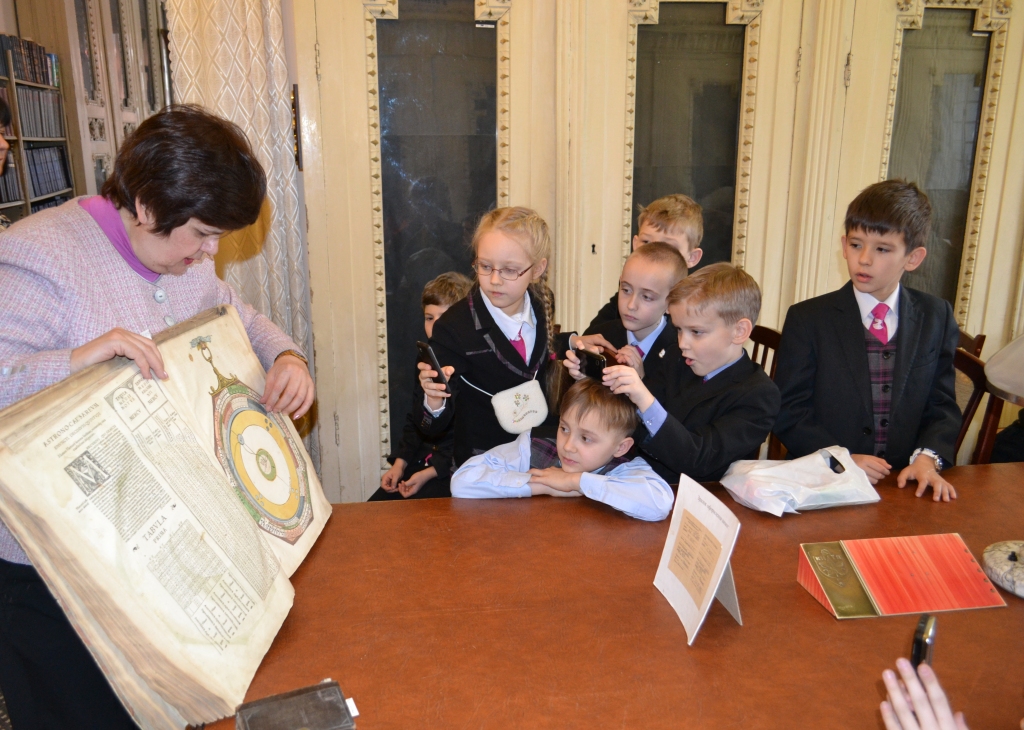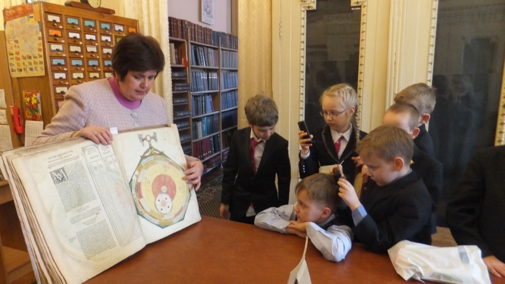 Допитливі школярі із захопленням слухали про те, як у пошуках засобів передавання інформації розвивалася писемність і книжна культура: від вузликового і малюнкового письма до винаходу книгодрукування. Учні дізналися про давні технології виготовлення паперу, складання тексту з окремих металевих літер і створення кольорових ілюстрацій в давніх книжках, на власні очі побачили пам’ятки книжкового мистецтва. Із неприхованою цікавістю розглядали діти унікальні експонати з колекцій відділу стародруків і рідкісних видань: підробку щоденника Колумба і ботанічний атлас XVII ст. із розфарбованими зображеннями рослин, оригінальні ксилографічні видання японських казок і дитячу книжку ХІХ ст. «Багдадские пирожники» з рухомими ілюстраціями, перший буквар Івана Федорова і прижиттєве видання «Кобзаря» Тараса Шевченка та ін.