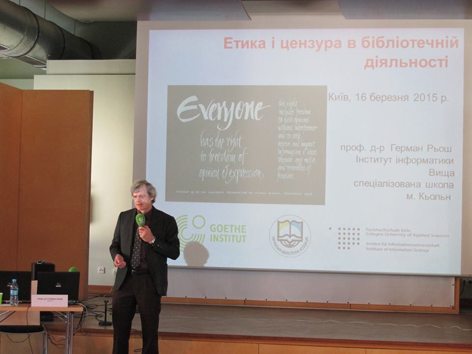 16–17 березня 2015 року фахівці Національної бібліотеки України імені В.І. Вернадського та інших провідних вітчизняних бібліотек різних систем і відомств взяли участь у Міжнародному семінарі «Етика і цензура у бібліотеці», що відбувся в Гете-Інституті в Україні за підтримки Посольства США в Україні, Української бібліотечної асоціації (УБА) та Національної парламентської бібліотеки України.