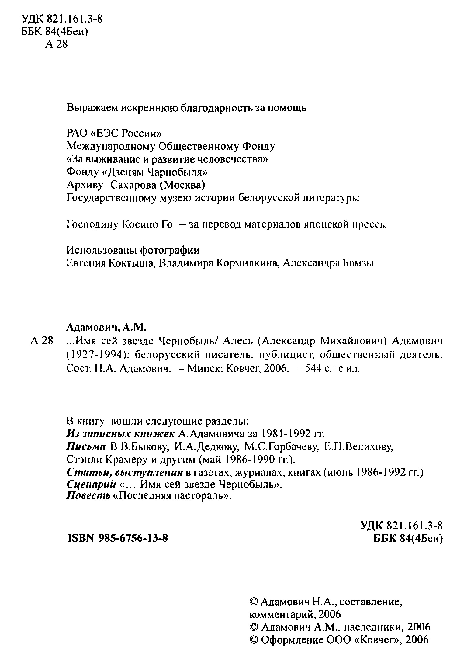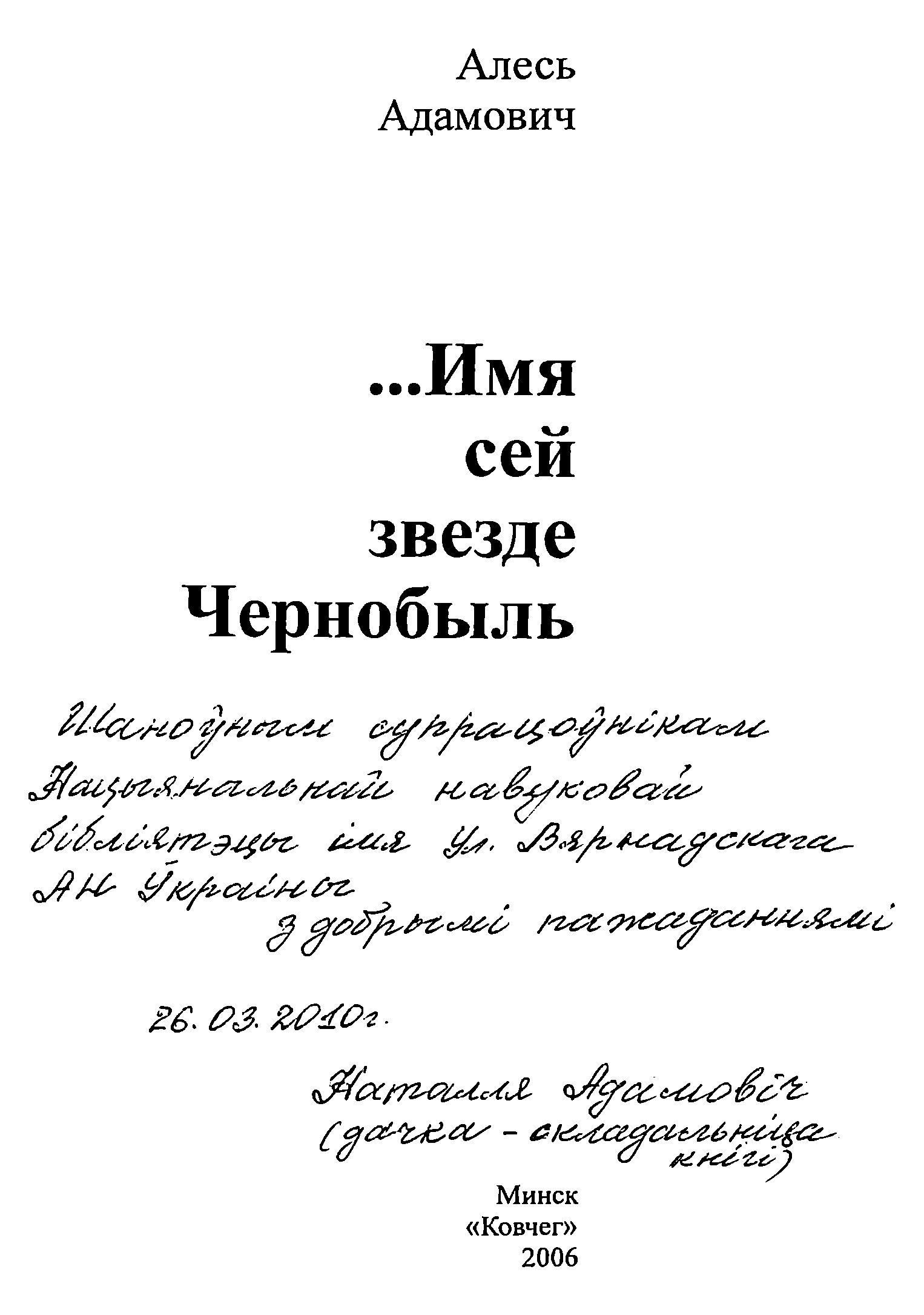 Наостанок Ігор Ліховий передав книжку відомого білоруського письменника, публіциста й громадського діяча Олеся Адамовича «… Имя сей звезде Чернобыль» з дарчим підписом укладача збірки - доньки автора Наталії Адамович - фахівцям Національної бібліотеки України імені В.І.Вернадського, презентовану під час його каденції на посту Надзвичайного і Повноважного Посла України в Республіці Білорусь (2007–2010).