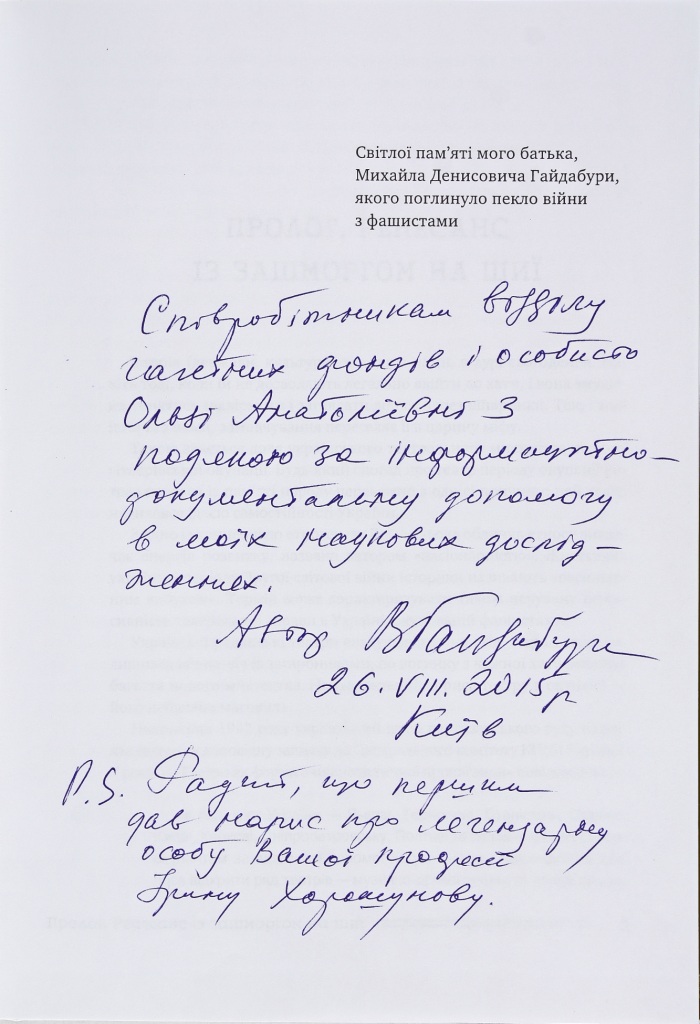 Відділ газетних фондів висловлює щиру подяку Валерію Михайловичу Гайдабурі, члену-кореспонденту Академії мистецтв України, доктору мистецтвознавства, активному користувачу Національної бібліотеки України імені В. І. Вернадського за коштовний дарунок – особисті авторські книги: