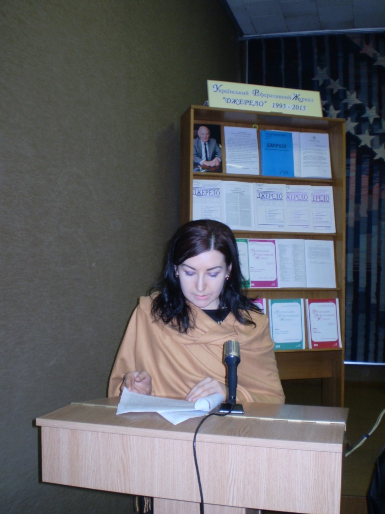 Завершилася робота круглого столу виступом завідувача відділу наукового формування національних реферативних ресурсів НБУВ Надії Зайченко. У першу чергу вона подякувала всім науково-інформаційним установам – партнерам НБУВ у створенні УРЖ «Джерело». «Завдяки спільним зусиллям нам вдалося збільшити обсяг журналу зі 100 друкованих облікових аркушів у 1996 році до 1 048 – у 2014 році. За цей період в журналі надано інформацію про більш, ніш 500 тис. наукових публікацій», – підкреслила Надія Зайченко. Згадуючи перші роки існування журналу вона зазначила: «У 90-х роках в Україні було чимало галузевих реферативних журналів, однак багато з них не витримали конкуренції і закрилися. Ще приємно усвідомлювати, що саме УРЖ "Джерело" у 1995 році став першим дійсно українським реферативним журналом. Попереду в нас чимало цікавих напрямів для розвитку та наполегливої праці».