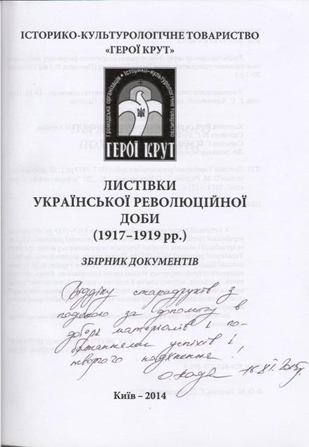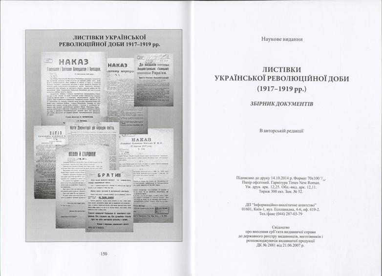 Листівки Української революційної доби (1917–1919 рр.) : збірник документів / уклали О. М. Надтока, Г. С. Черевичний. – Київ : ДП «Інформ-аналіт. агентство», 2014. – 151 с.: іл.