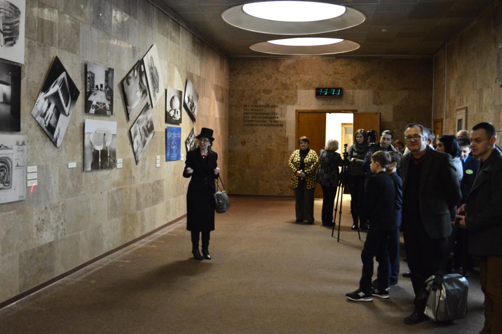 На завершення презентації Світлана Біленкова ознайомила учасників презентації з експонатами виставки. Неймовірне зацікавлення викликала детальна й захоплива розповідь Свтлани Біленкової про ідеї Фрідріха Кізлера щодо ідеального міста на стовпах, ідеального будинку, моделей інтер’єрів, спіральної сцени, рухомих костюмів і скульптур, мультифункціональних меблів у «корреалістичному» стилі та багато іншого.