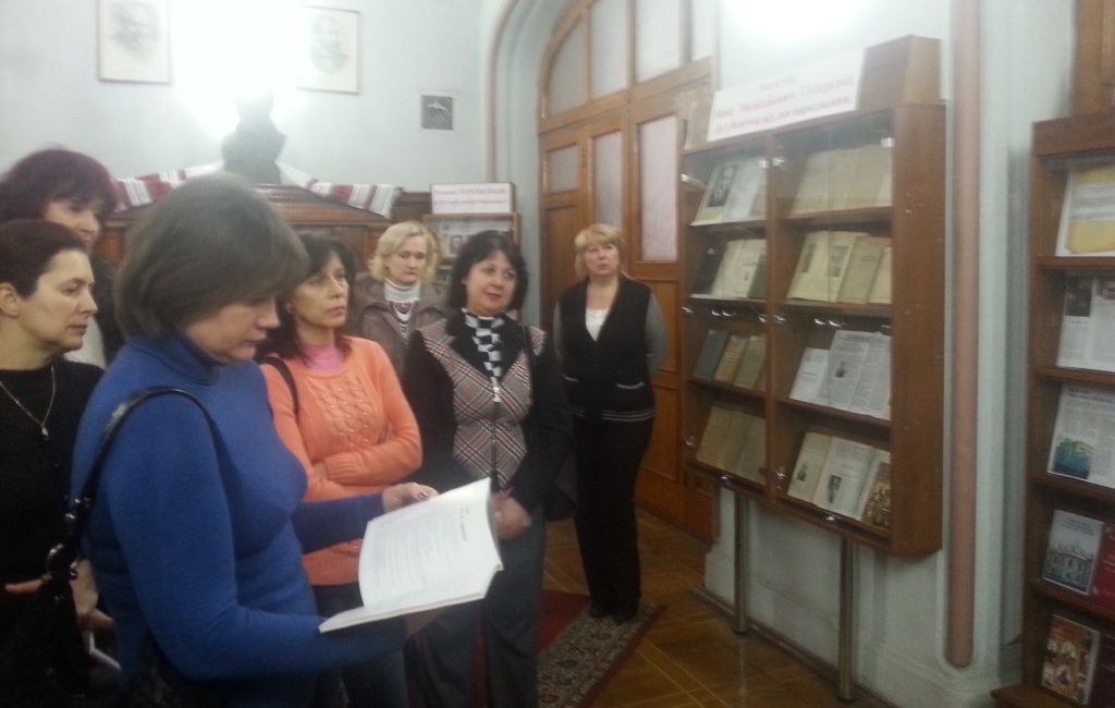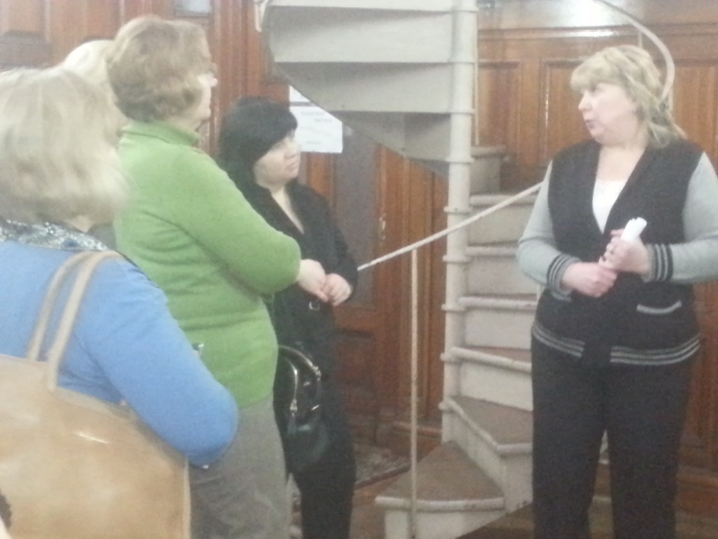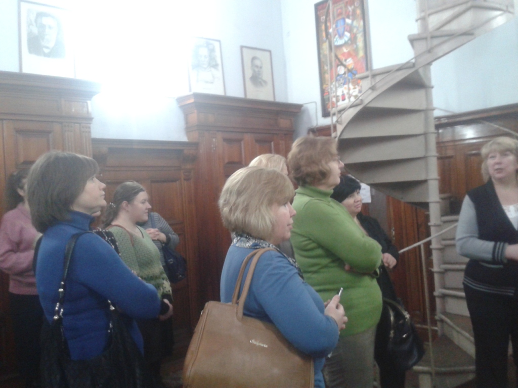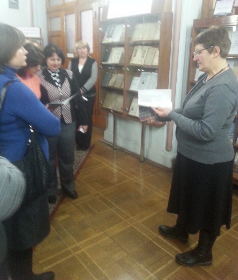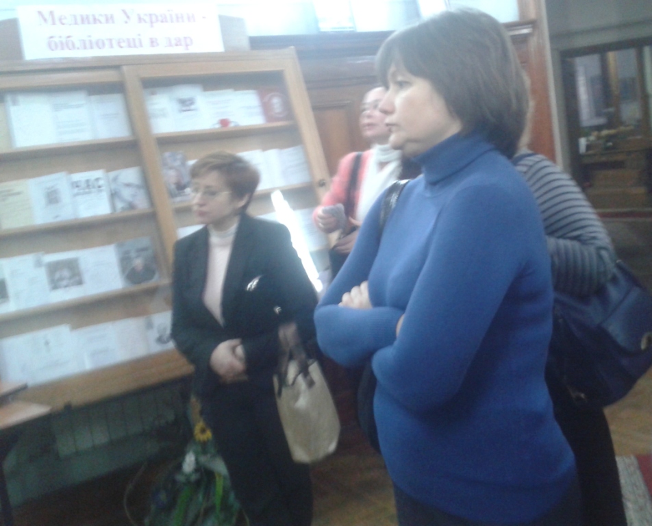 У провідній медичній бібліотеці України нас привітно зустріли: завідувач відділу наукової обробки патентного фонду Тетяна Крівіч; завідувач відділу книгозберігання наукової літератури Надія Харченко; завідувач відділу наукової бібліографії Лідія Корнілова та завідувач відділу пропаганди наукової літератури та МБА Людмила Коломієць. Вони натхненно розповіли історію заснування ННМБ та її відділів, провели цікаву екскурсію розкішними залами, які залишилися нам у спадок від відомої в Україні та за кордоном сім’ї бізнесменів та меценатів Терещенків.