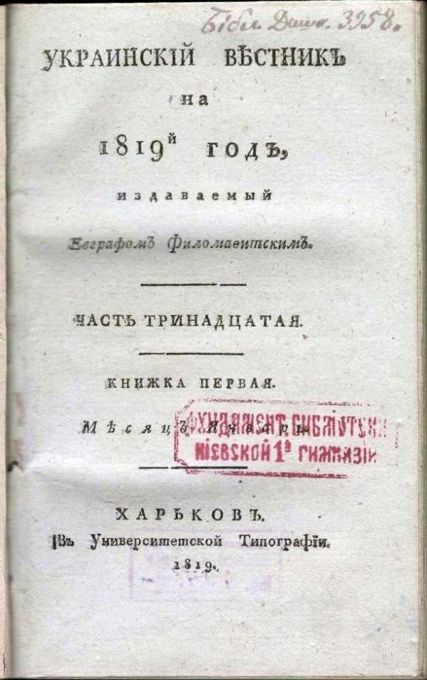 На початку 2016 р. українська наукова спільнота відзначає 200-річчя від часу заснування «Украинского вестника» – першого в Україні літературно-художнього, наукового та громадсько-політичного щомісячника. Часопис видавався впродовж 1816–1819 рр. при Харківському університеті – осередку українського національного відродження в першій третині ХІХ століття.