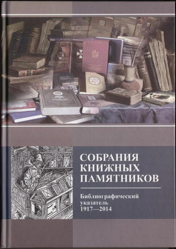 Собрание книжных памятников (редких и ценных изданий) в библиотеках, музеях и архивах Российской Федерации: указатель каталогов и описаний: Библиографический указатель (1917–2014) / Рос. гос. б-ка. Научн.-исслед. отдел редких книг (Музей книги) ; Ответств. сост. Л. И. Фурсенко ; Сост. О. А. Грачева, Н. Г. Ромашева ; Послесл. А. Ю. Самарина. – Изд. 4, переработ. и доп. – Москва : Пашков дом, 2015 – 627 с.