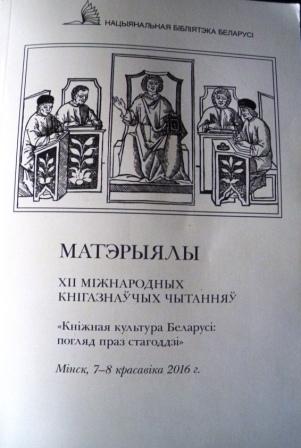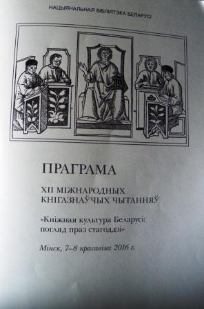 Вітаємо білоруських колег із успішним проведенням ХІІ Міжнародних книгознавчих читань «Кніжная культура Беларусі: погляд праз стагоддзі», що пройшли у Національній бібліотеці Білорусі у Мінську 7–8 квітня 2016 р.