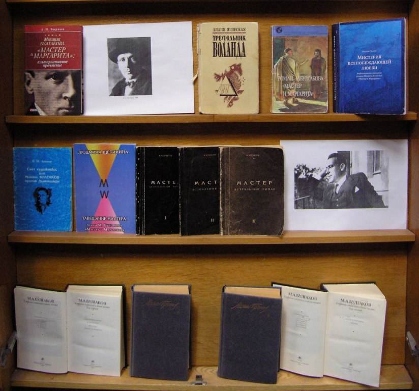 Перший розділ виставки репрезентує видання, присвячені життю і творчості письменника. Серед них – праці таких відомих дослідників біографії та літературної спадщини Михайла Булгакова, як Борис Соколов («Булгаковская энциклопедия»), Юрій Віленський («Доктор Булгаков»), Володимир Лакшин («Булгакиада»), Олена Земська («Михаил Булгаков и его родные. Семейный портрет»). Особливий інтерес представляють видання Анатолія Кончаковського, директора меморіального музею письменника в Києві: фотоальбом «Киев Михаила Булгакова» и «Библиотека Михаила Булгакова».