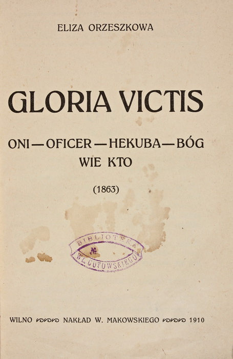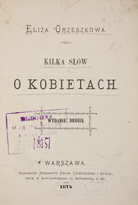 Запрошуємо відвідати книжкову виставку, присвячену творчості Е. Ожешко, та ознайомитись з електронною виставкою на сайті НБУВ, що були підготовлені за матеріалами відділу бібліотечних зібрань та історичних колекцій Інституту книгознавства НБУВ (Київ, віл. Володимирська, 62, кім. 307-3).