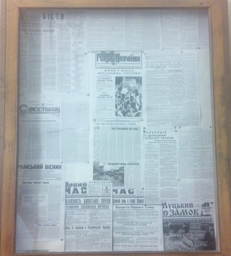 Чільне місце в експозиції посідають газетні публікації 1990-1991 років, де закарбувалися історичні події проголошення незалежності в сучасній Україні.