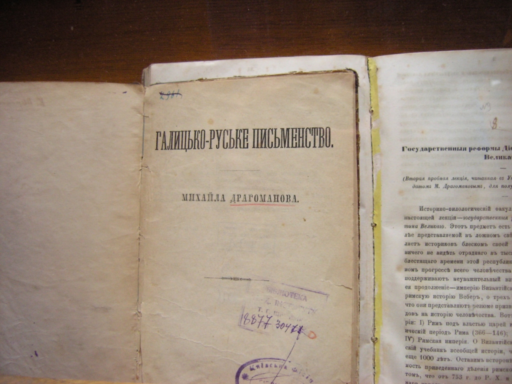 Друга частина виставки представляє твори, критико-біографічні та життєписні нариси, листування Михайла Драгоманова. Увагу привертають видання, що вийшли друком ще за життя вченого («Выигрыши последней войны» (1876), «Галицько-руське письменство» (1876), «Про українських козаків, татар і турків» (1876), «Австро-руські спомини (1867–1877)» (1889)), а також посмертні видання («Великорусскій интернаціоналъ и Польсько-Украинскій вопросъ» (1906), «Козаки» (1906), «Политическія сочиненія» (1909) та ін.).