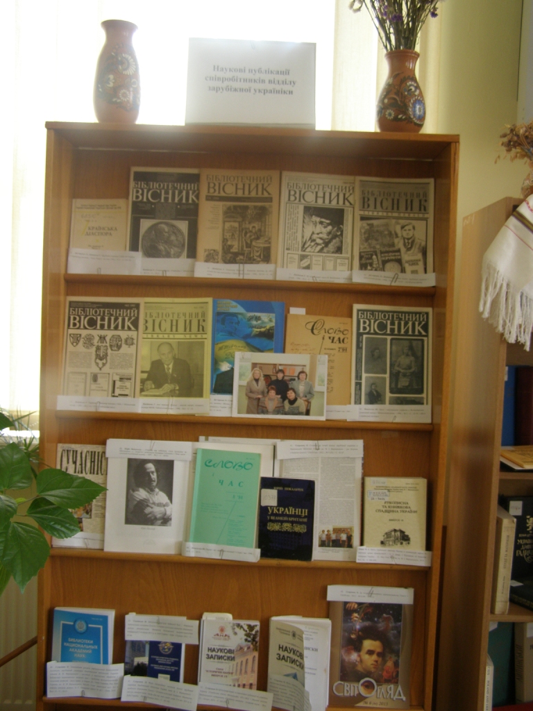 Виставка «Наукові публікації співробітників відділу зарубіжної україніки» репрезентує узагальнені результати наукових досліджень, проведених фахівцями відділу впродовж останніх 25-ти років.