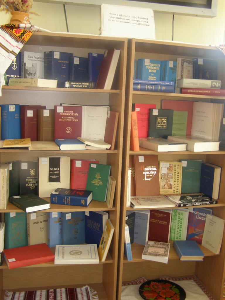 Виставка «Фонд відділу зарубіжної україніки як джерельна база наукових досліджень» розкриває склад книжкового зібрання фонду. Це книжки українською мовою, праці авторів-українців, українських організацій і об’єднань в мовою оригіналу й у перекладах, видання про Україну та українців всіма мовами світу. Серед них: «Історія України-Руси» Миколи Аркаса (Краків, 1912); Ілюстрована історія України Михайла Грушевського (Вінніпег, 1919); «Історія України 1917–1923 рр.» Дмитра Дорошенка (Нью-Йорк, 1954) та ін.