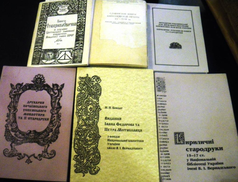 Бондар Н.П. Видання Івана Федорова та Петра Мстиславця з фондів Національної бібліотеки України імені В.І. Вернадського : дослідж., попримірниковий опис / Н.П. Бондар; НАН України, Нац. б-ка України ім. В.І. Вернадського. – Київ, 2012. – 309 c. Режим доступу: http://irbis-nbuv.gov.ua/E_LIB/00002203.pdf