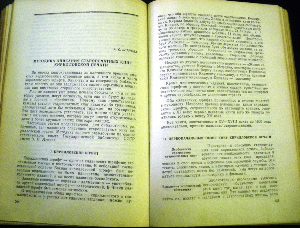 Зернова А.С. Методика описания старопечатных книг кирилловской печати / А.С. Зернова // Работа с редкими и ценными изданиями : Сб. статей и иструкт. мат. / ГБЛ. – Москва, 1973. – С. 17–96.
