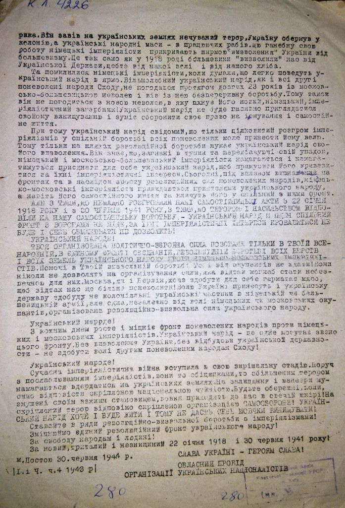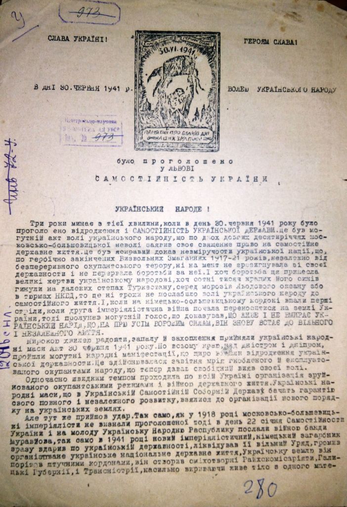 Після Акту злуки були віддруковані різноманітні листівки-звернення, листівки-оповіщення від Уряду Соборної України до українського народу, зокрема заклики до збройного протистояння ворогам об’єднаної молодої держави. Ці події стали знаковими для українців і вплинули на подальшу історію національно-визвольної боротьби українства за свою незалежність, і врешті набуття суверенітету. Беззаперечним підтвердженням тяглості українських державотворчих традицій у ХХ ст. стало проголошення Акту відновлення української державності 30 червня 1941 р., що наочно репрезентується повстанськими аркушівками 1940-х рр. колекції, що апелюють до подій проголошення незалежності 22 січня 1918 р. та соборності України 22 січня 1919 р.