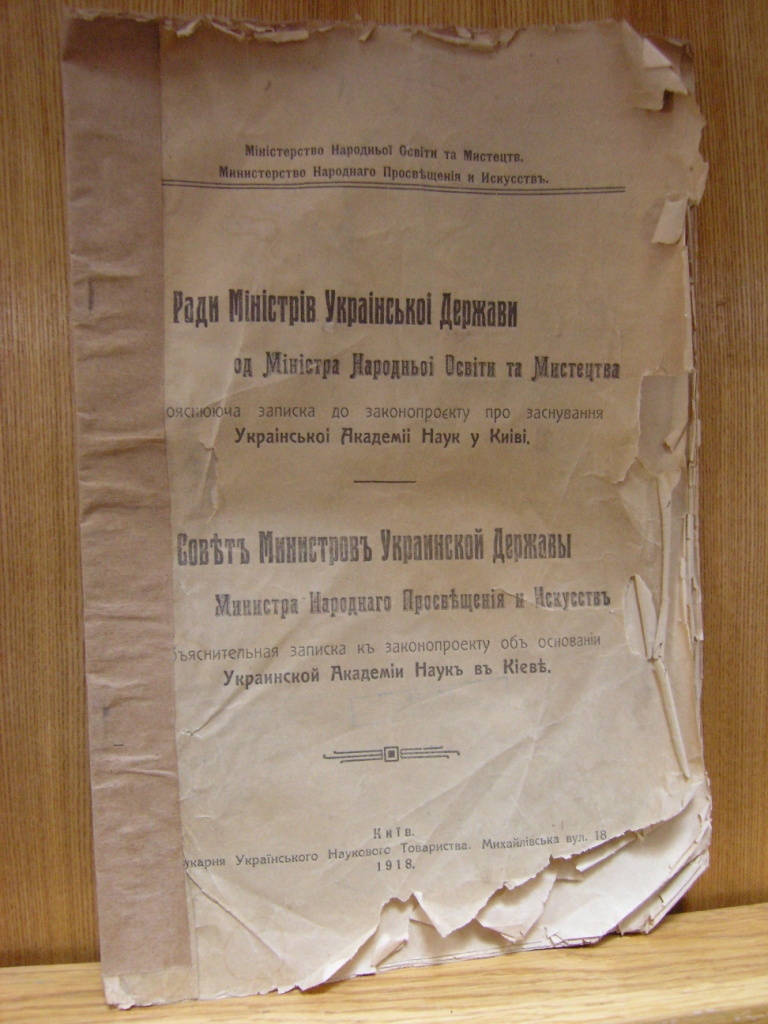 Це матеріали з питань культури, науки та освіти, відповідні закони й постанови. Слід відзначити постанови Центральної ради про заснування Української Академії наук та Всенародної бібліотеки Української держави, монографію історика бібліотечної справи в Україні Таісії Ківшар «Український книжковий рух як історичне явище. 1917–1923» (1996), монографію Любові Дубровіної «Історія Національної бібліотеки України імені В. І. Вернадського. 1918–1941» (1995) та ін.