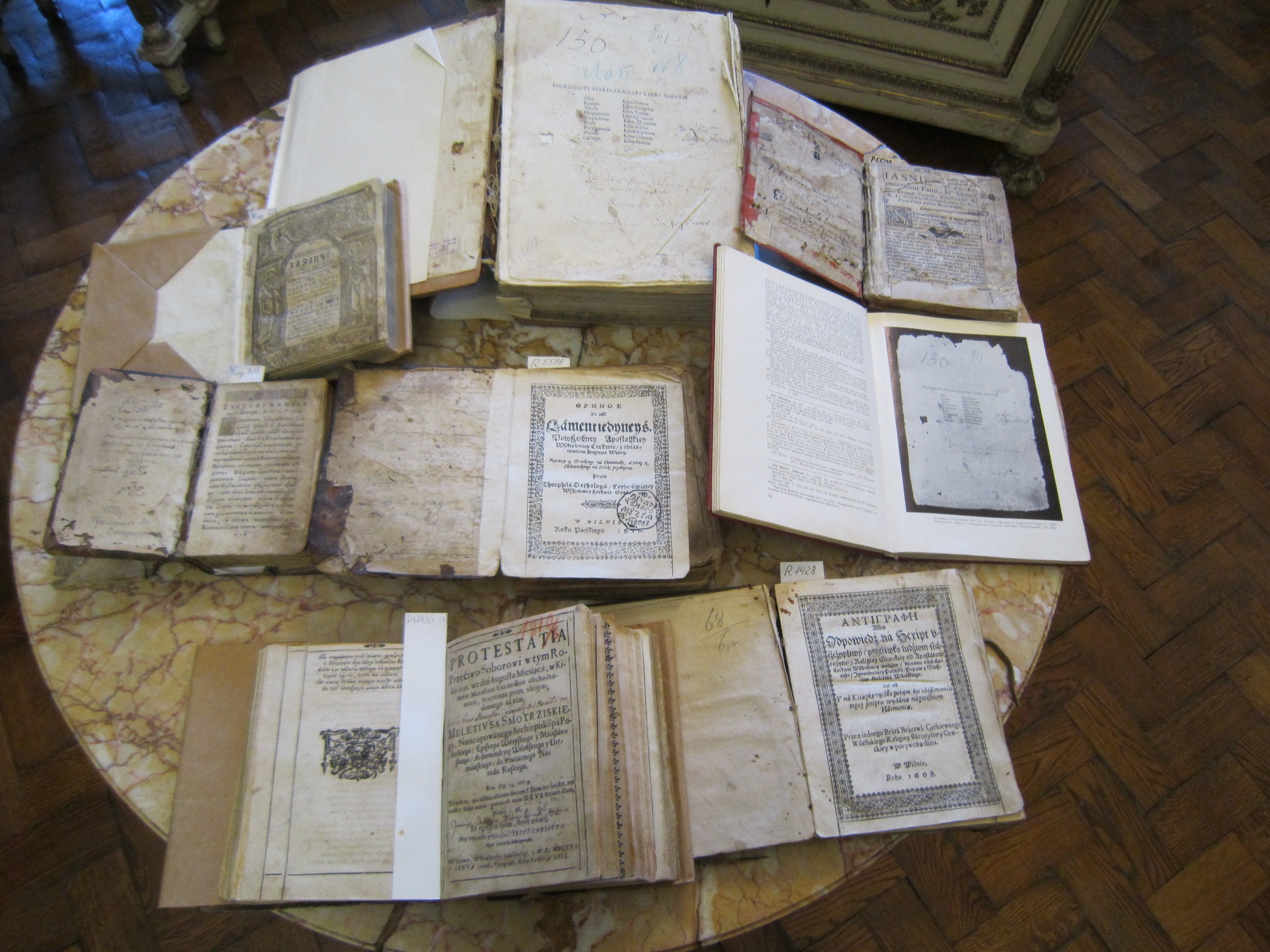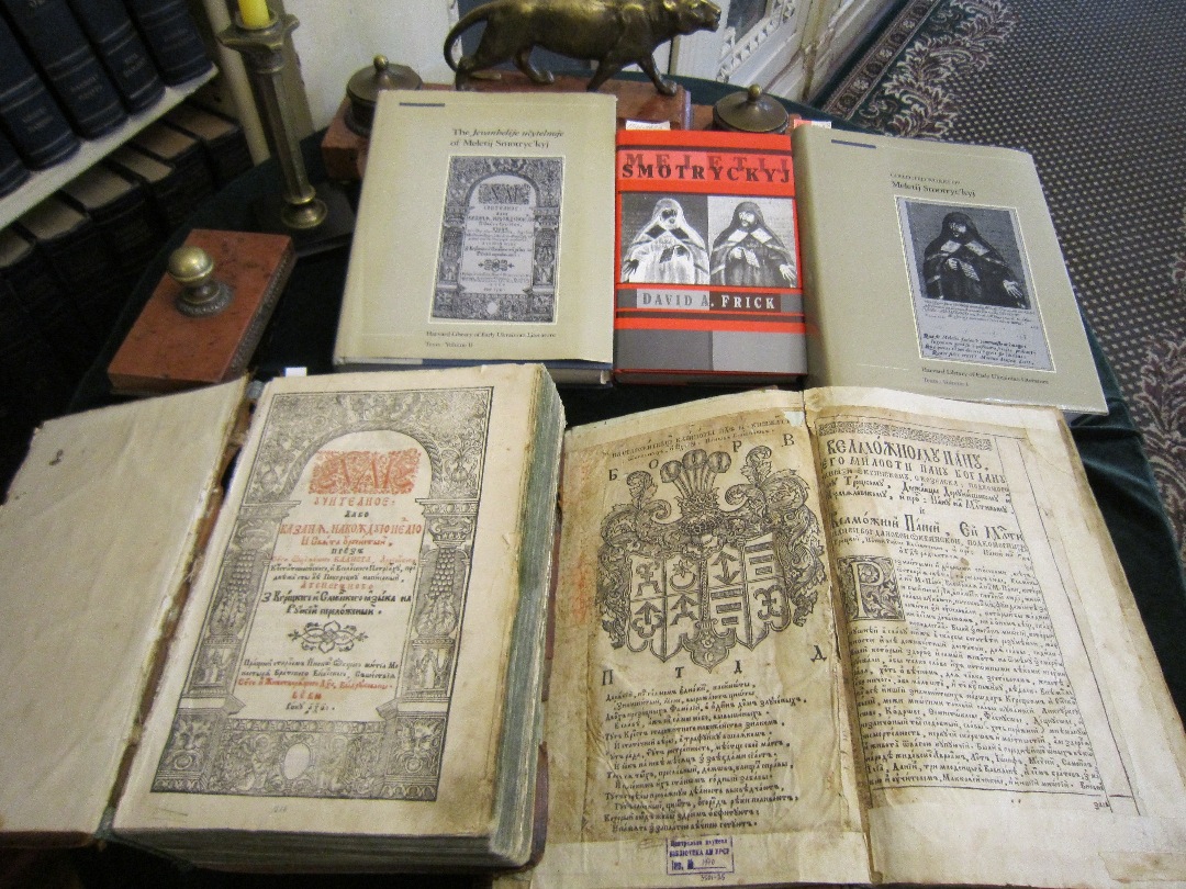 Також учасники заходу отримали нагоду ознайомитись з міні-виставкою, присвяченою М. Смотрицькому. Серед експонатів були представлені видання творів М. Смотрицького, насамперед, два примірники «Треносу» – один зі Києво-Софійського собору, другий – зі збірки Церковного музею у Львові. Експонувалися й інші польськомовні твори автора – «Антиграфе» 1608 р., «Парененсіс» 1629 р., «Верифікація невинності» 1621 р., «Протестація» 1628 р., «Еленхус» 1622 р., «Суплікація» 1623 р. Внесок М. Сморицького в розбудову церковнослов’янської мови демонструють «Граматика» 1619 р., вірогідно, йому належить й україномовний переклад «Євангелія учительного» 1616 р., обидва видані в друкарні Вільнюського братства в Єв’є. В числі друкованих творів М. Смотрицького є й рідкісний панегірик «Казанье на жалосний погреб» його соратника покровителя Леонтія Карповича 1620 р. Перлиною виставки став примірник творів Геродота у венеціанському виданні 1494 р. з власноручним підписом М. Сморицького на першій сторінці. Експонувалися й окремі перевидання творів М. Сморицького і дослідження його доробку. Маємо надію, що й надалі будуть проводитися заходи, де науковці ознайомлюватимуть всіх зацікавлених з різними аспектами вивчення давніх книжкових пам’яток, що зберігаються в фондах найбільшої української книгозбірні.