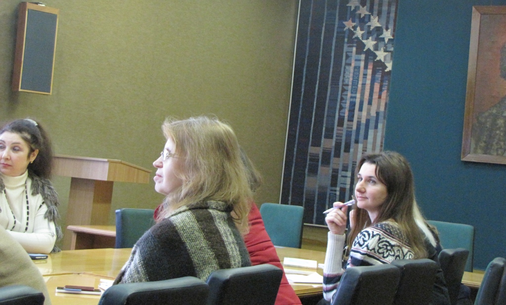 Фахівців НБУВ дуже цікавили питання, пов’язані з пошуком додаткових джерел фінансування та інших ресурсів (кадрів, устаткування, книжок, програмного забезпечення), необхідних для розвитку бібліотеки. Навівши найбільш цікаві приклади фандрейзингової діяльності зарубіжних бібліотек, Олена Башун люб’язно поділилася власними міркування, що базуються на багаторічному досвіді, щодо пошуку потенційних джерел фінансування, обґрунтування потреби в коштах, формування, підтримку і розвиток зв'язків з донорами, формування лояльної до бібліотеки громадської думки.