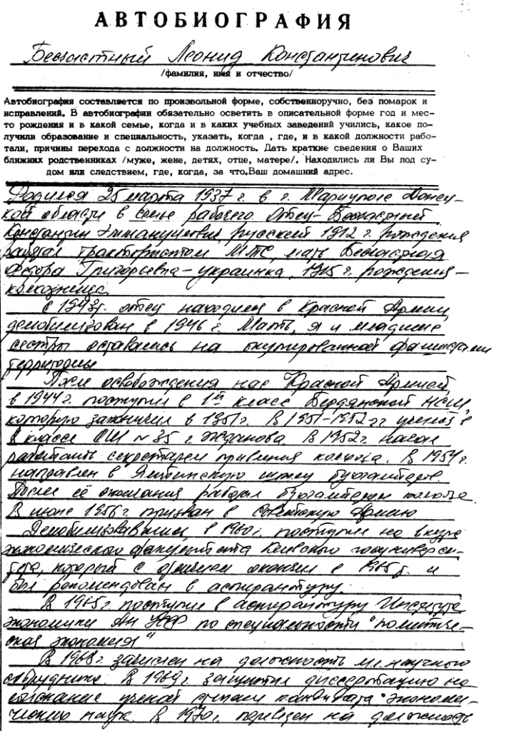 У Інституті архівознавства НБУВ завершено наукове описування документів особового фонду № 348 «Безчасний Леонід Костянтинович (25.03.1937 – 26.07.2004) − член-кореспондент НАН України за спеціальністю «політична економія» (1988)», опис на які схвалено Експертно-перевірною комісією НАН України.