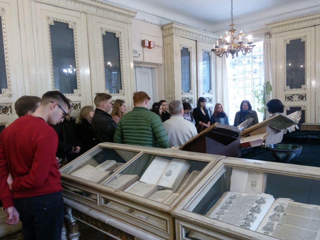 Відвідувачі отримали відомості про книжкові шафи та книгозбірню С.А. Понятовського, про збірку відділу стародруків та загальні фонди НБУВ, про правила роботи читального залу відділу стародруків та умови видачі раритетних видань дослідникам. Маємо надію, що яскраві зразки мистецтва книги різного часу надихнуть майбутніх фахівців поліграфічної справи на нові неординарні видавничі проекти.