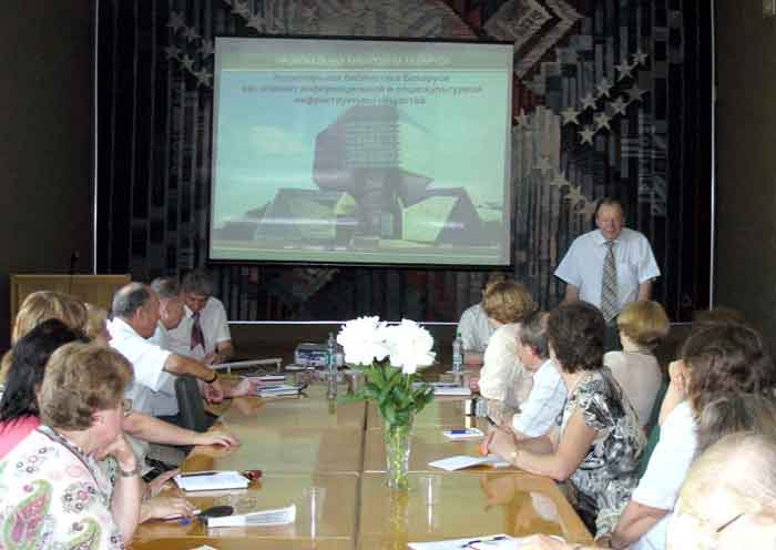 25 травня 2007 р. в НБУВ (головний корпус) відбулося засідання круглого столу "Білоруська бібліотечна наука та бібліотеки на сучасному етапі", де з доповіддю "Національна бібліотека Білорусі: історія, стан і перспективи розвитку" виступив генеральний директор Національної бібліотеки Білорусі, д-р пед. наук Р. С. Мотульський. Було представлено відеофільм "Національна бібліотека Білорусі".