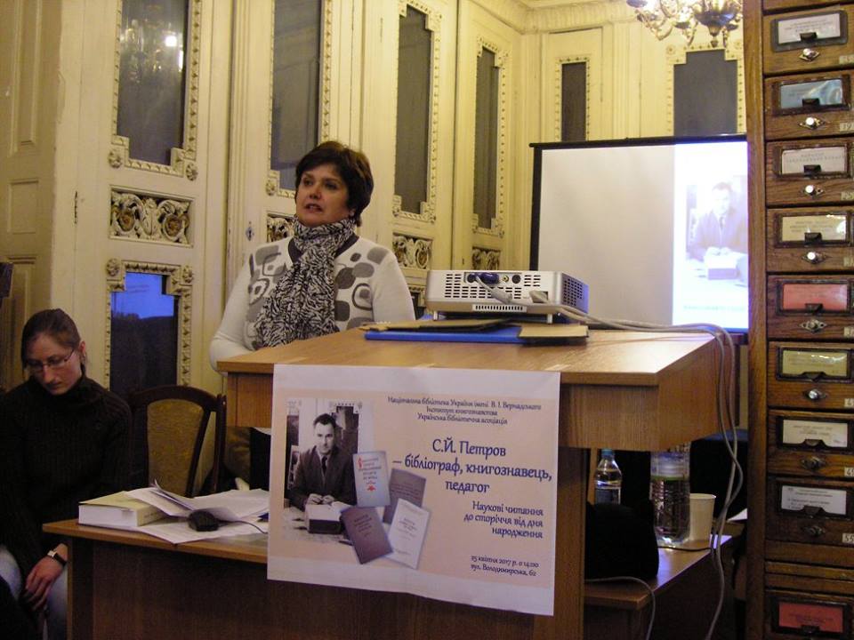 Про внесок С.Й.Петрова у формування бібліографічного репертуару української книжки та результати багатотомного ретроспективного бібліографічного проекту «Книга в Україні. 1861–1917» розповіла науковий співробітник відділу національної бібліографії НБУВ, канд. іст. наук Ірина Лиханова. Вона, зокрема, нагадала, що основу покажчика склала зібрана Петровим картотека видань, надрукованих українською та російською мовами в Україні протягом 1861 – 1917 рр. Праця була копіткою, обсяги картотеки зростали, і до цієї роботи були залучені й інші члени родини, зокрема син – Сергій Степанович Петров, який довгі роки після смерті батька зберігав картотеку.