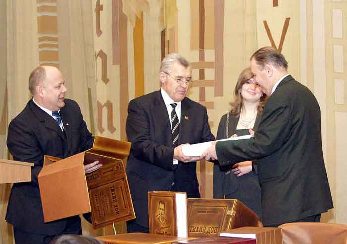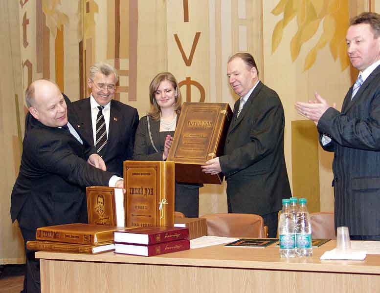 3 квітня 2008 року в Національній бібліотеці України імені В. І. Вернадського відбулася урочиста презентація та вручення головному книгосховищу УКРАЇНИ факсимільного видання тексту рукопису — 1-ї та 2-ї книг роману М. О. Шолохова "Тихий Дон".