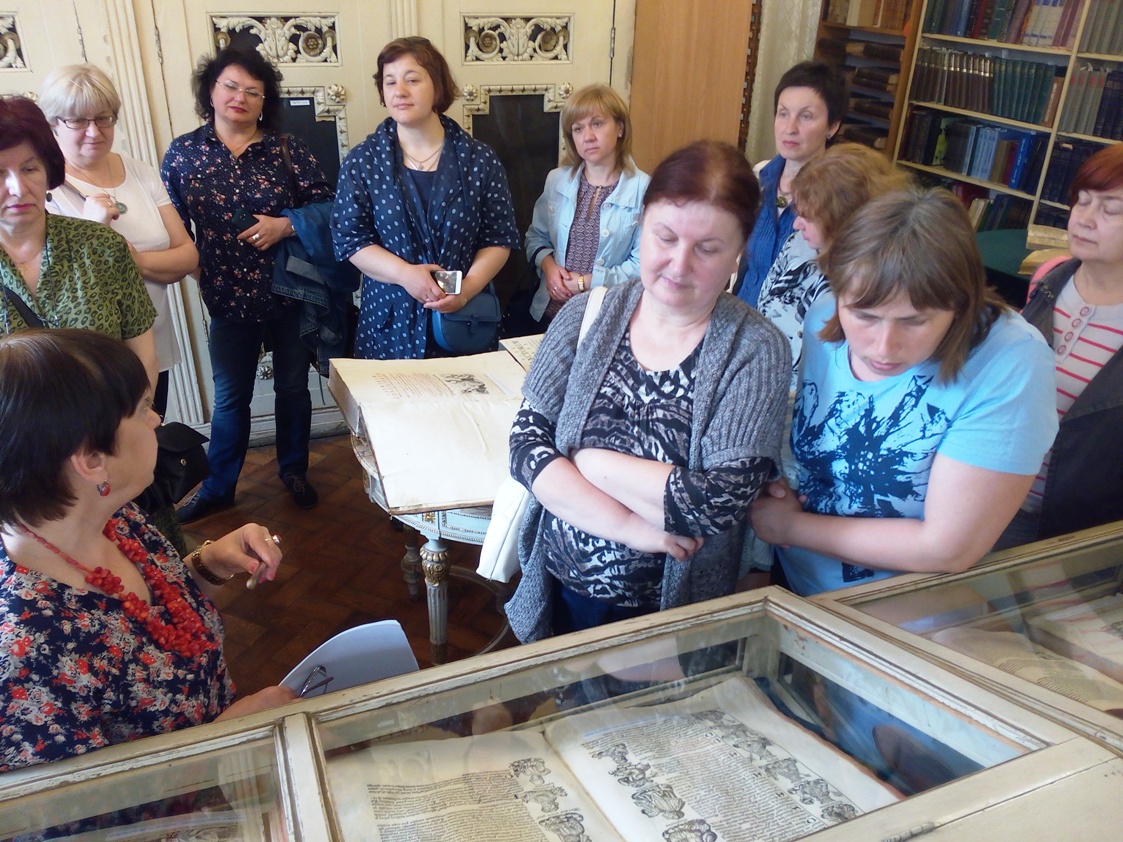 6 червня 2017 р. співробітники Науково-технічної бібліотеки ім. Г. І. Денисенка Національного університету «Київський політехнічний інститут ім. Ігоря Сікорського» відвідали відділ стародруків та рідкісних видань Національної бібліотеки України імені В. І. Вернадського. Колеги ознайомилися з роботою відділу, організацією його фонду, науковою діяльністю співробітників. Відвідувачам була проведена екскурсія по діючій у відділі книжковій виставці «Історія – від оповіді до науки: розвиток історичної науки у стародруках». Жвавий інтерес у екскурсантів викликали власницькі книжкові знаки представлених на виставці примірників. Співробітники Науково-технічної бібліотеки висловили побажання у майбутньому відвідати у відділі стародруків виставку, присвячену розвитку природничих наук і техніки. Гостей приймала с. н. с. Ірина Ціборовська-Римарович.