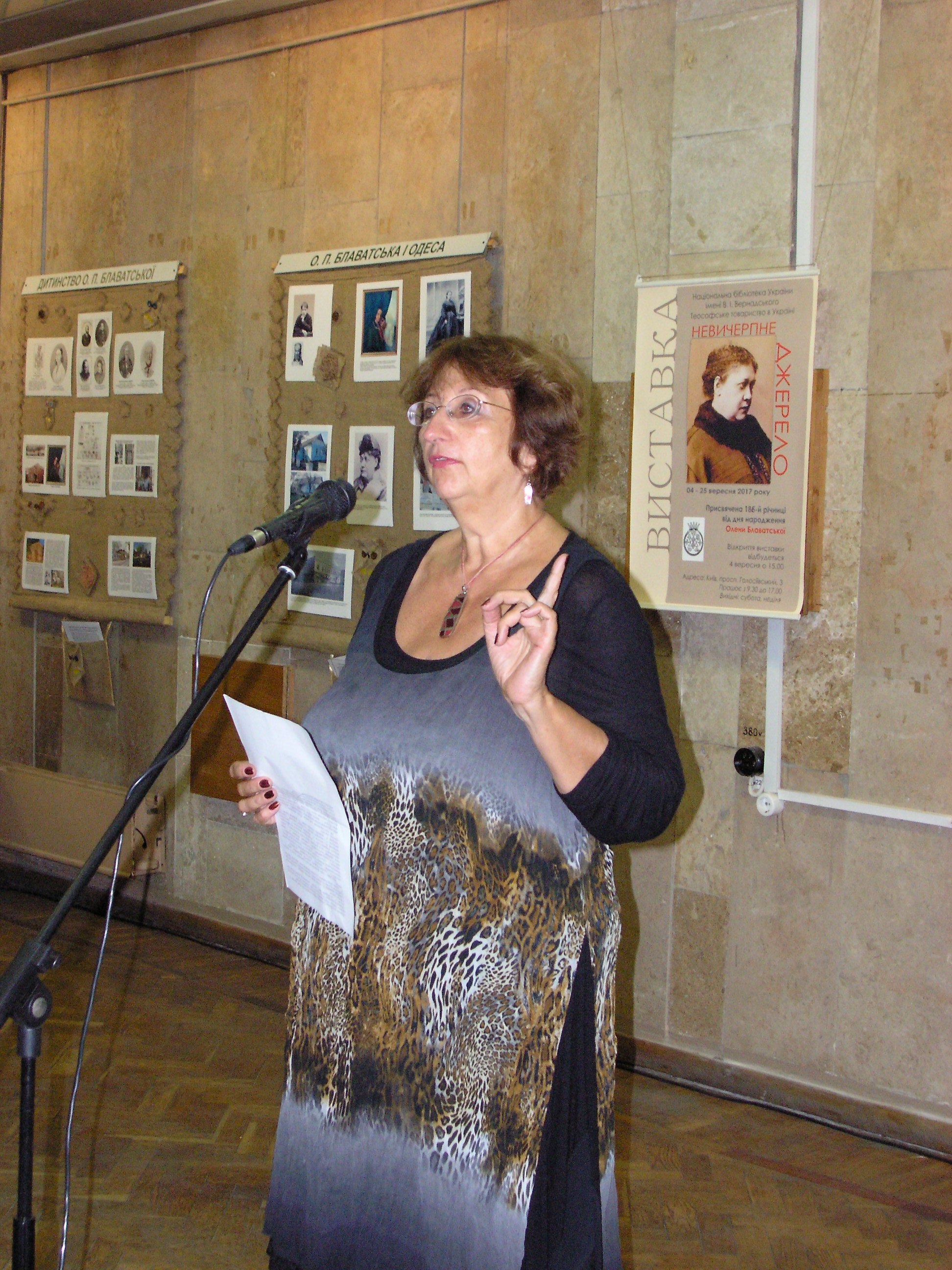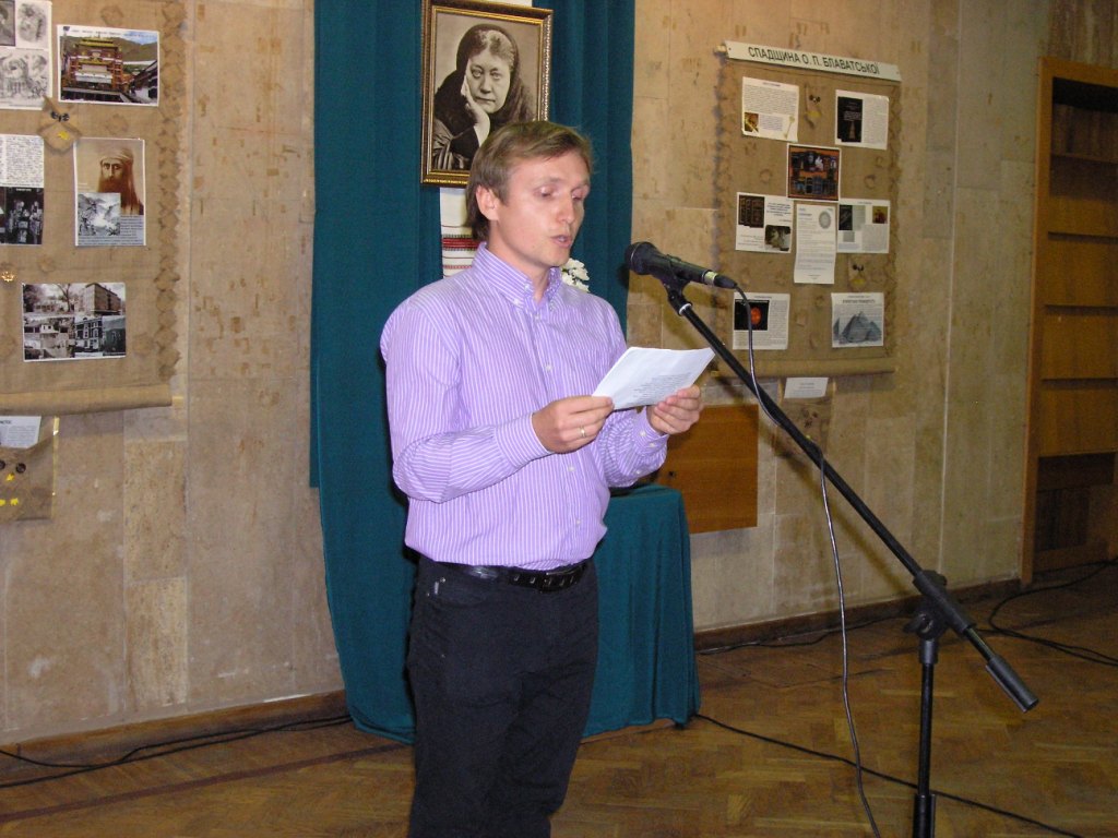 Про роль О. Блаватської у світовій культурі йшлося у виступі керівника Київського центру Теософського товариства в Україні Володимира Петрова. Паралелі між світоглядними ідеями Блаватської та науковим вченням Володимира Вернадського провела д-р сільгосп. наук Тетяна Єгорова.