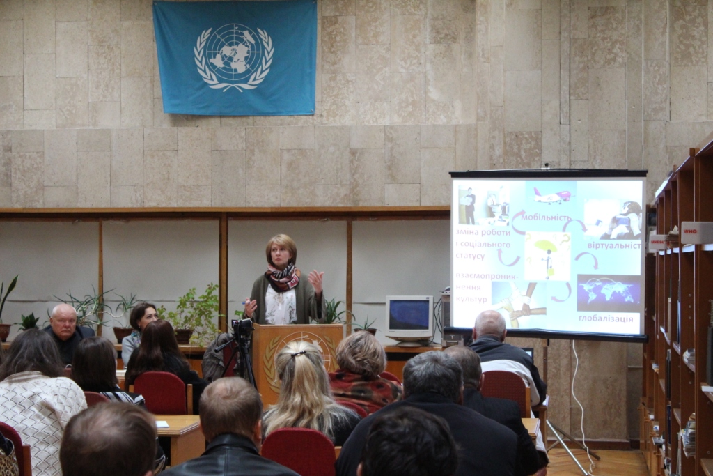 Шляхи адаптації діяльності науково-інформаційних центрів до умов інтенсифікації інформаційних обмінів було розглянуто в доповіді старшого наукового співробітника відділу оперативної інформації СІАЗ, канд. іст. наук Валентини Пальчук. Було зазначено, що зростання потреб в ефективній інформаційній координації, наданні користувачам доступу до сформованої в процесі науково-аналітичної діяльності інформаційної моделі певного проблемного поля, зумовлює розвиток таких напрямів інформаційної діяльності, як інформаційна аналітика, медіааналітика в роботі сучасних інформаційних центрів. Попит на науково-аналітичні продукти і послуги, своєю чергою, вимагає підвищення відповідних якісних параметрів, розроблення і впровадження сучасних методологічних, організаційних засад та програмно-технологічних засобів забезпечення результативності інформаційної діяльності, пов’язаної з дослідженням інформаційних процесів, і відповідно, із технологіями інформаційного обігу, опрацюванням, аналізом, узагальненням інформації, що функціонує в соціальних інформаційних комунікаціях та відображає результат (представленість) чи авторську тональність стосовно суспільної діяльності окремих державних, політичних, економічних, наукових, громадсько-суспільних та інших суб’єктів.