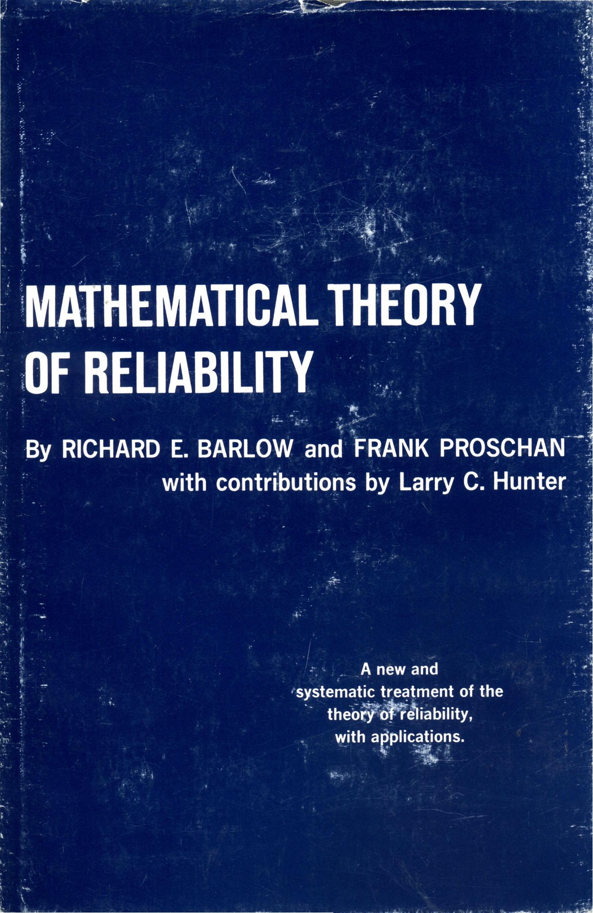 Barlow, Richard E.. Mathematical theory of reliability [Text] : a new and systematic treatment of the theory of reliability, with applications / Richard E. Barlow, Frank Proschan ; with contributions by Larry C. Hunter. - New York ; London ; Sydney : John Wiley & Sons, 1967. - XIII, 256 p. : fig., tab. ; [1] l. : tab. - (The SIAM series in applied mathematics). - Бібліогр.: с. 241-248.