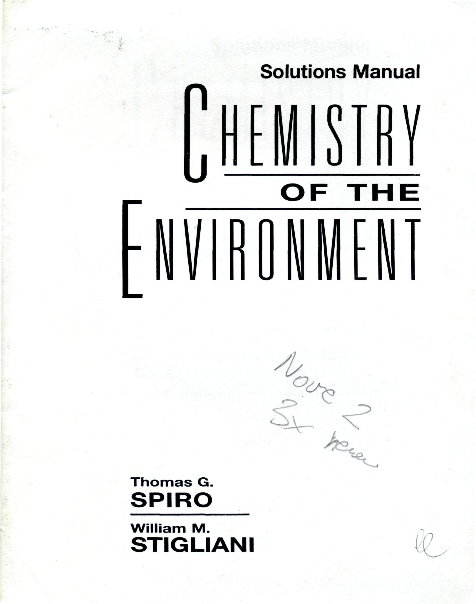 Spiro, Thomas G.. Chemistry of the environment [Text] : solutions manual / Thomas G. Spiro, William M. Stigliani. - Upper Saddle River : Prentice Hall, 1996. - 59 p.