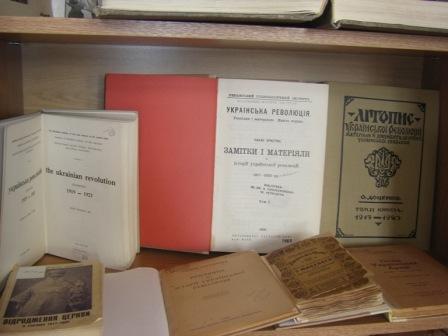 Левову частку виставлених книг становлять спогади та розвідки, написані суспільно-політичними, військовими, культурними та релігійними діячами Української революції 1917–1921 рр. – В. Андрієвським, С. Ґольдельманом, Д. Донцовим, М. Капустянським, В. Кедровським, Є. Коновальцем, В. Липківським, І. Мазепою, Ю. Тютюнником, П. Скоропадським, П. Христюком та ін.