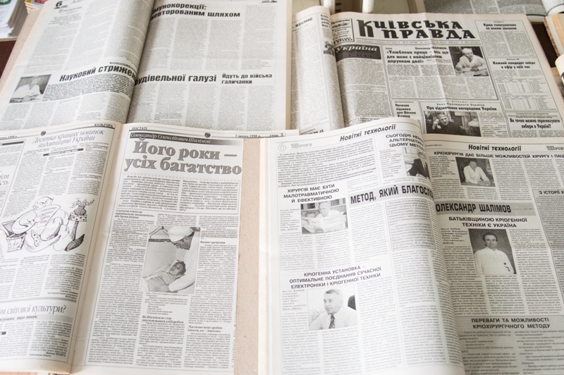 У читальному залі Відділу газетних фондів Національної бібліотеки України імені В.І.Вернадського розпочалася експозиція газетних публікацій «Його руки – усіх багатство». Виставку приурочено з нагоди сторіччя з дня народження видатного медика й засновника української хірургічної школи Олександра Олексійовича Шалімова.