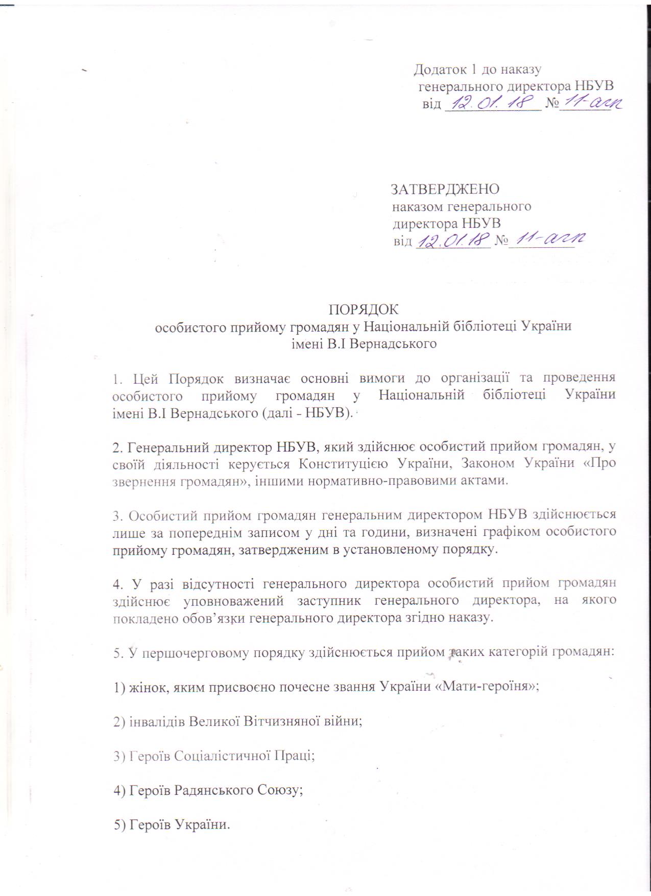 Головна › Про встановлення графіка особистого прийому громадян генеральним директором Національної бібліотеки імені В.І.Вернадського та затвердження порядку особистого прийому громадян у Національній бібліотеці імені В.І.Вернадського