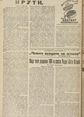 На виставці представлені видання від 1918 р. до початку Другої світової війни, тобто період найбільш гучного та відкритого обговорення бою під Крутами на шпальтах преси. Для користувачів репрезентовано періодику, яка видавалася на територіях сучасної України та за її межами. Експоновано не тільки репортажі, а й спогади, промови, вірші, некрологи тощо. Газетні публікації повідомляють про хід події та її наслідки. На сторінках преси підіймається питання щодо української армії, порівняння події під Крутами з битвою під Фермопілами тощо.