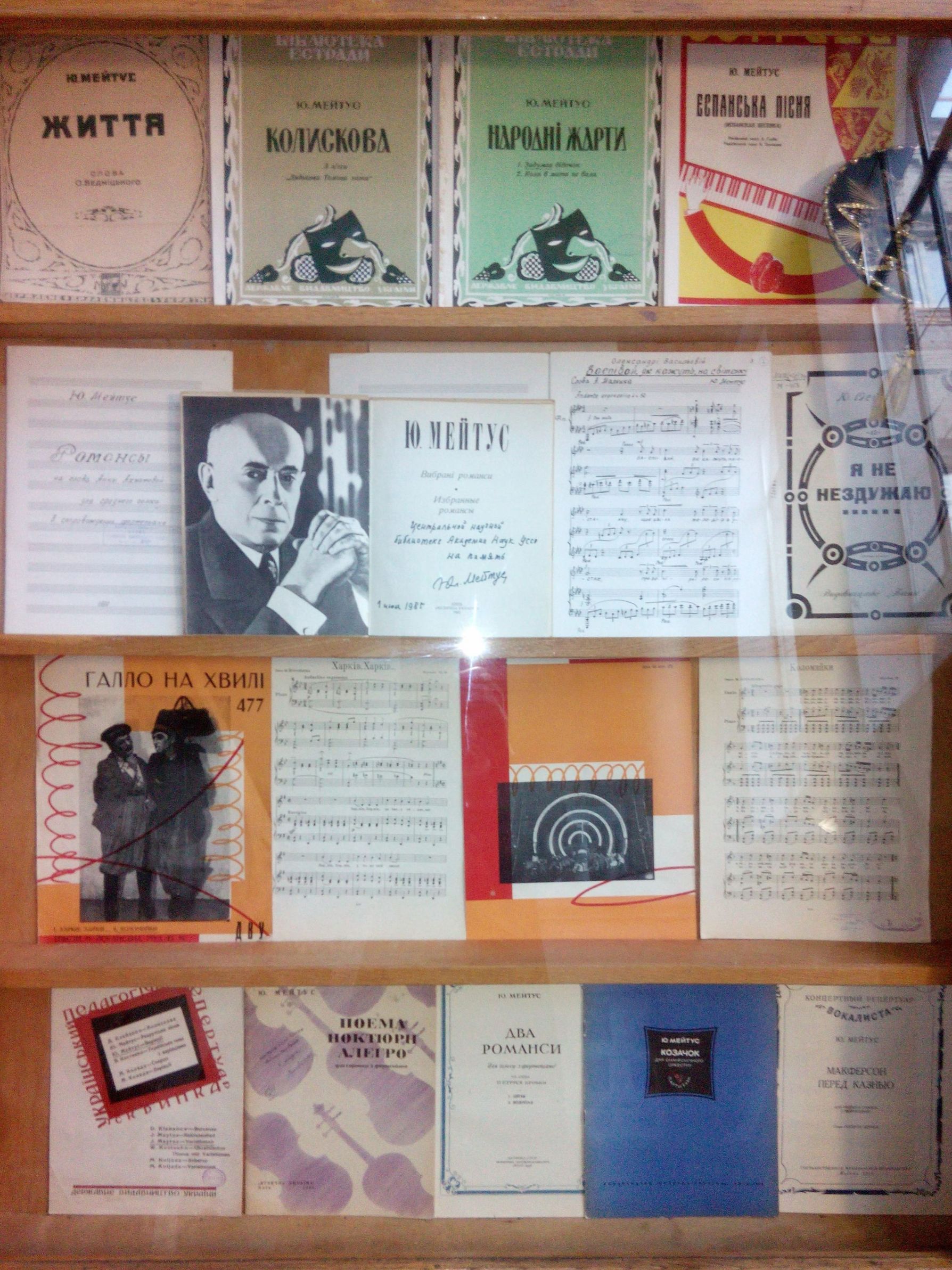 Відділ музичних фондів підготував на честь ювілею Юлія Мейтуса (115-річчя від дня народження) велику виставку у фойє корпусу на Володимирській, 62, широку за хронологією та жанрами. «Перлинами» цієї виставки є примірники, подаровані композитором нашому музичному відділу. Такі подарунки були традиційними, починаючи з 70-х років ХХ ст. Частина музичної бібліотеки Юлія Мейтуса після його смерті, за бажанням його нащадків, також потрапила до музичного відділу. Всі примірники з бібліотеки композитора проштамповані його печаткою-екслібрисом.