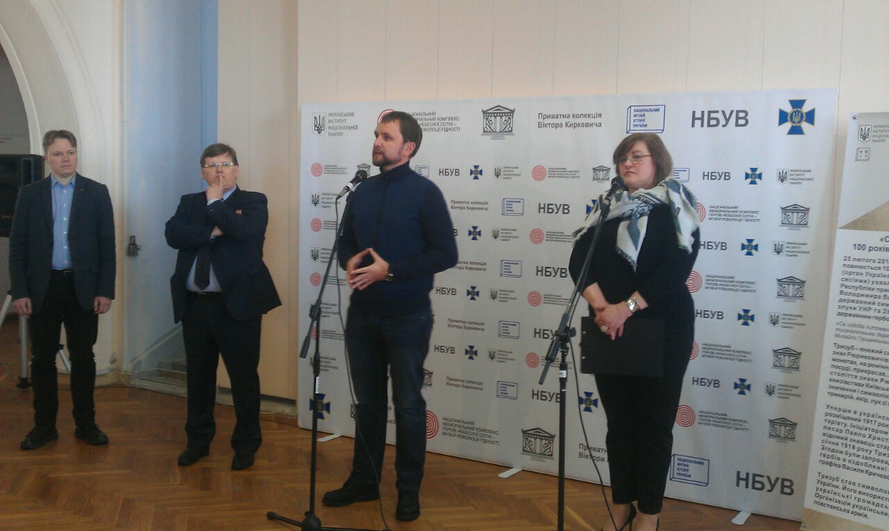 В Українському інституті Національної пам'яті відкрилась виставка, присвячена 100-річчю Державного герба України. На виставці представлено унікальні експонати з фондів Національного музею історії України, Національного художнього музею, Галузевого державного архіву СБУ, Інституту рукопису Національної бібліотеки України імені В. Вернадського, Національного меморіального комплексу Героїв Небесної Сотні - Музею Революції Гідності та приватної збірки колекціонера Віктора Киркевича.