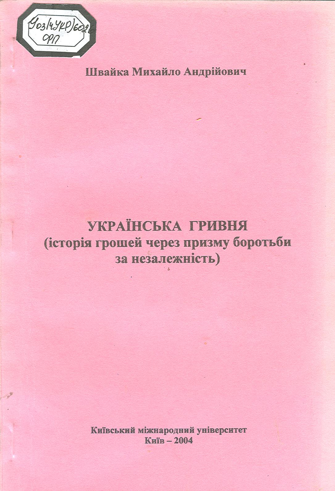 5. Швайка, Михайло Андрійович. Українська гривня [Текст] : історія грошей через призму боротьби за незалежність / М. А. Швайка. - К. : Київський міжнародний університет, 2004. - 74 с.