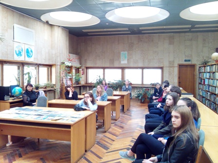 18 квітня 2018 р. у секторі картографічних видань Відділу комплексного бібліотечного обслуговування відбулася презентація тематичної виставки «Водні ресурси України» для учнів 11-В класу ліцею «Голосіївський » № 241.