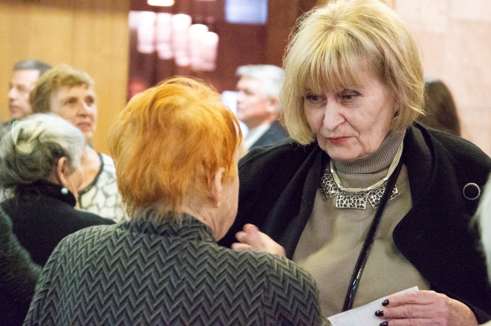 Цікава статистика прозвучала на урочистому зібранні: безперервно пропрацювали в бібліотеці понад 30 років 50 осіб, понад 40 – 18, понад 50 років – 9. Заслужений працівник культури, ветеран НБУВ Ірина Володимирівна Сіра – саме з тих дев’яти. Її схвильований виступ з привітанням і спогадами зал зустрів щирими оплесками.