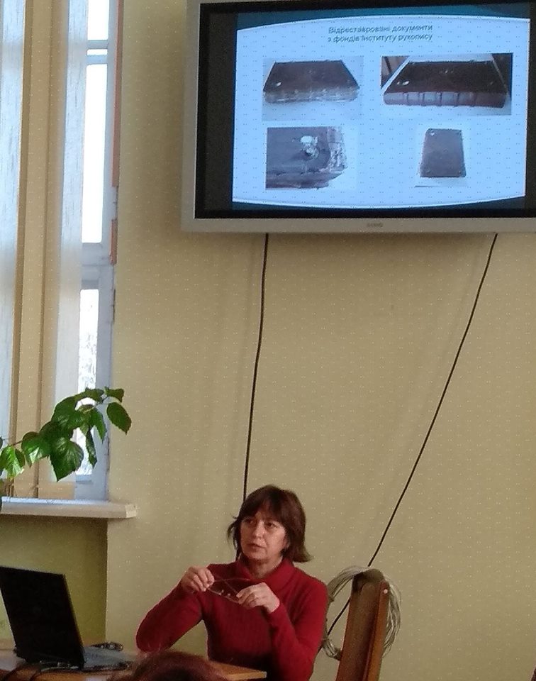 На цьогорічному семінарі, який відбувся у приміщенні НБУВ на вулиці Володимирській, з метою популяризації наукового доробку виконавців науково-дослідних робіт, що розроблялися у відділі наукових технологій збереження фондів ЦКР упродовж останніх років, а також виробничих звершень відділів реставрації та оправи з наукової реставрації рукописних та стародрукованих книг, плакатів, карт та газет XVI-XIX століть, масової реставрації аркушів друкованих видань, а також виготовлення твердих оправ для книжок, газет XIX-XXI ст., були оприлюднені змістовні презентації.