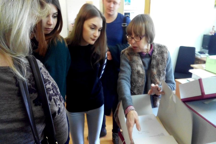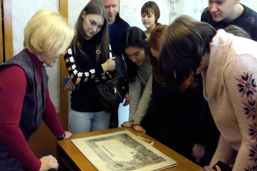 Хтось скептично заперечить під впливом стереотипів – та яка там молодь нині зацікавиться архівами? Не слухайте скептиків. 13 лютого Інститут архівознавства НБУВ приймав гостей – студентів 2-го курсу Навчально-наукового інституту менеджменту та підприємництва Державного університету телекомунікацій та їхнього викладача О.М. Шеремету. Вони – майбутні фахівці у галузі інформаційної, архівної та бібліотечної справи, тому в ознайомлювальній екскурсії, яку провела завідувач відділу археографії кандидат історичних наук С.В. Старовойт, засипали працівників бібліотеки запитаннями.
