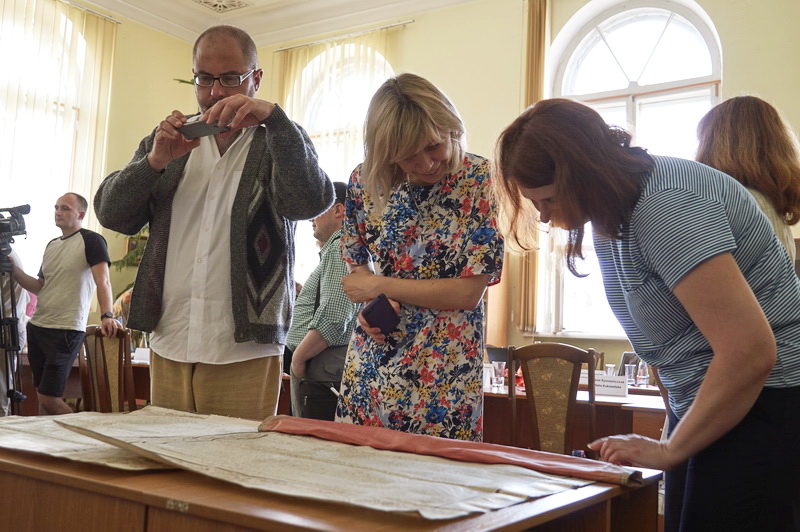 …В освітленій ранковим сонцем залі ошатного старовинного приміщення бібліотеки на вулиці Володимирській Грамота у відповідному для демонстрації обрамленні стала безумовним центром уваги. Хоча розміщена була й не в центрі, оскільки центр зали займали почесні гості, але вона, без сумніву, посідала чільне місце на цьому непересічному й хвилюючому заході. Заході, присвяченому поверненню унікального раритету додому більш як через сім десятиліть