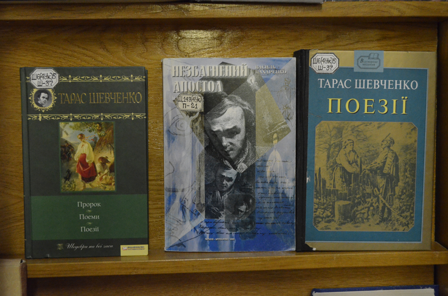 В ній зібрано і твори самого поета, в тому числі й кілька художніх альбомів з його картинами, і книги про Кобзаря, зокрема «Тарас Шевченко – життя і творчість» Івана Дзюби, «Завжди сучасний – Тарас Шевченко в просторі та часі» Василя Кушерця, «Пророк» Василя Касіяна та інші. Відвідувачі відзначають, що деякі з книг уже стали раритетами, яких, можливо, ніде, крім бібліотек, уже й не знайдеш.