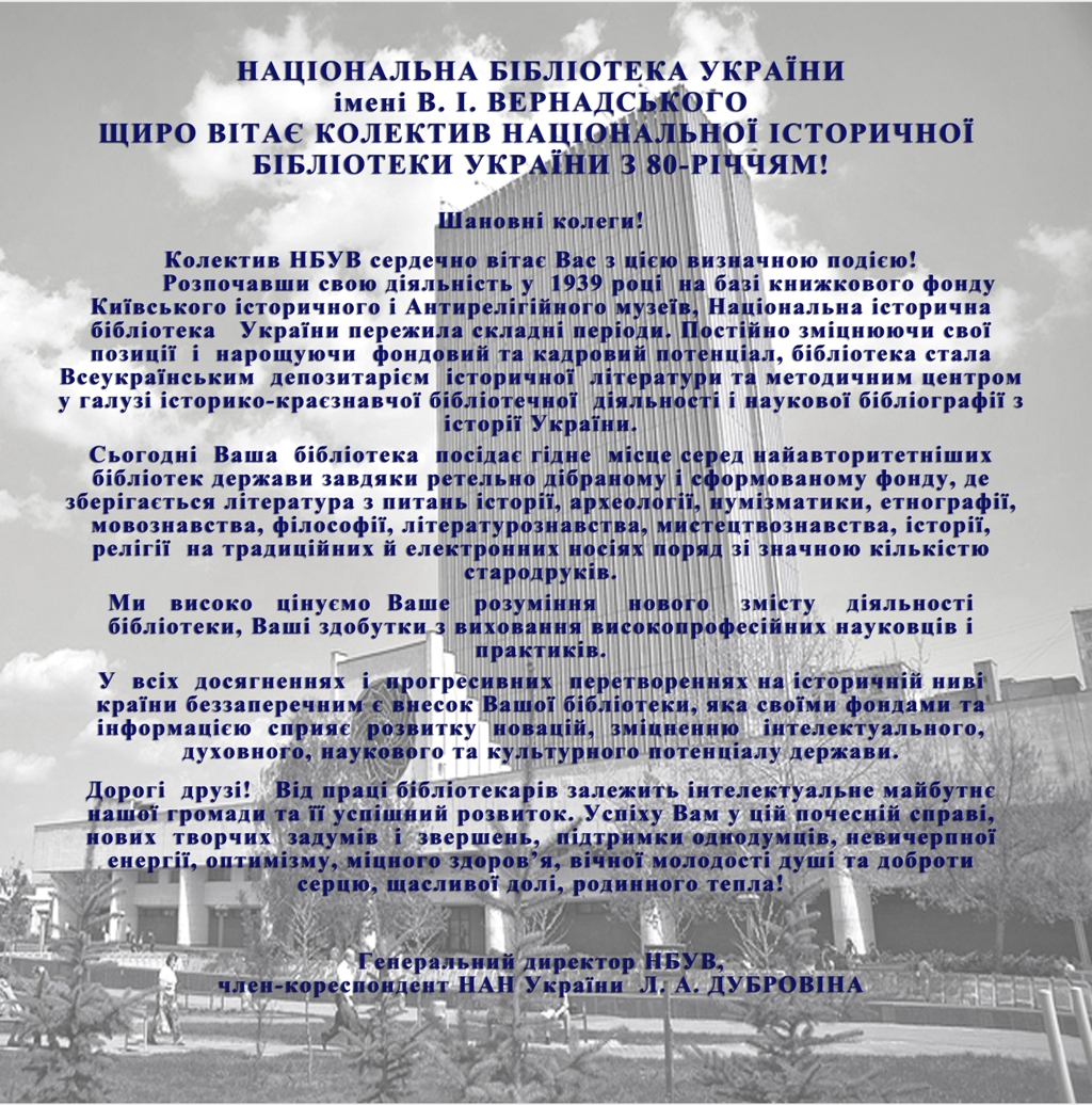Національній історичній бібліотеці України – 80.